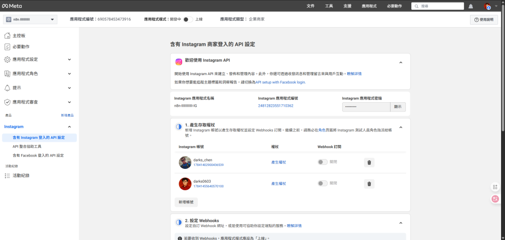 回到紅框的含有 Instagram 商家登入的 API 設定。