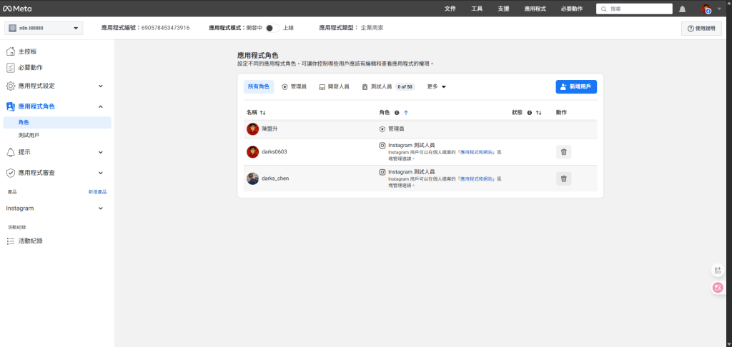 (僅限想串接多帳號的你) 如果你有多個IG帳號,也能在這裡看到都成為了測試人員。