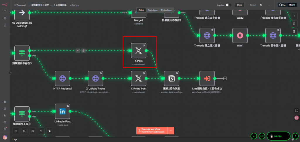 串接n8n X 發文的工作流